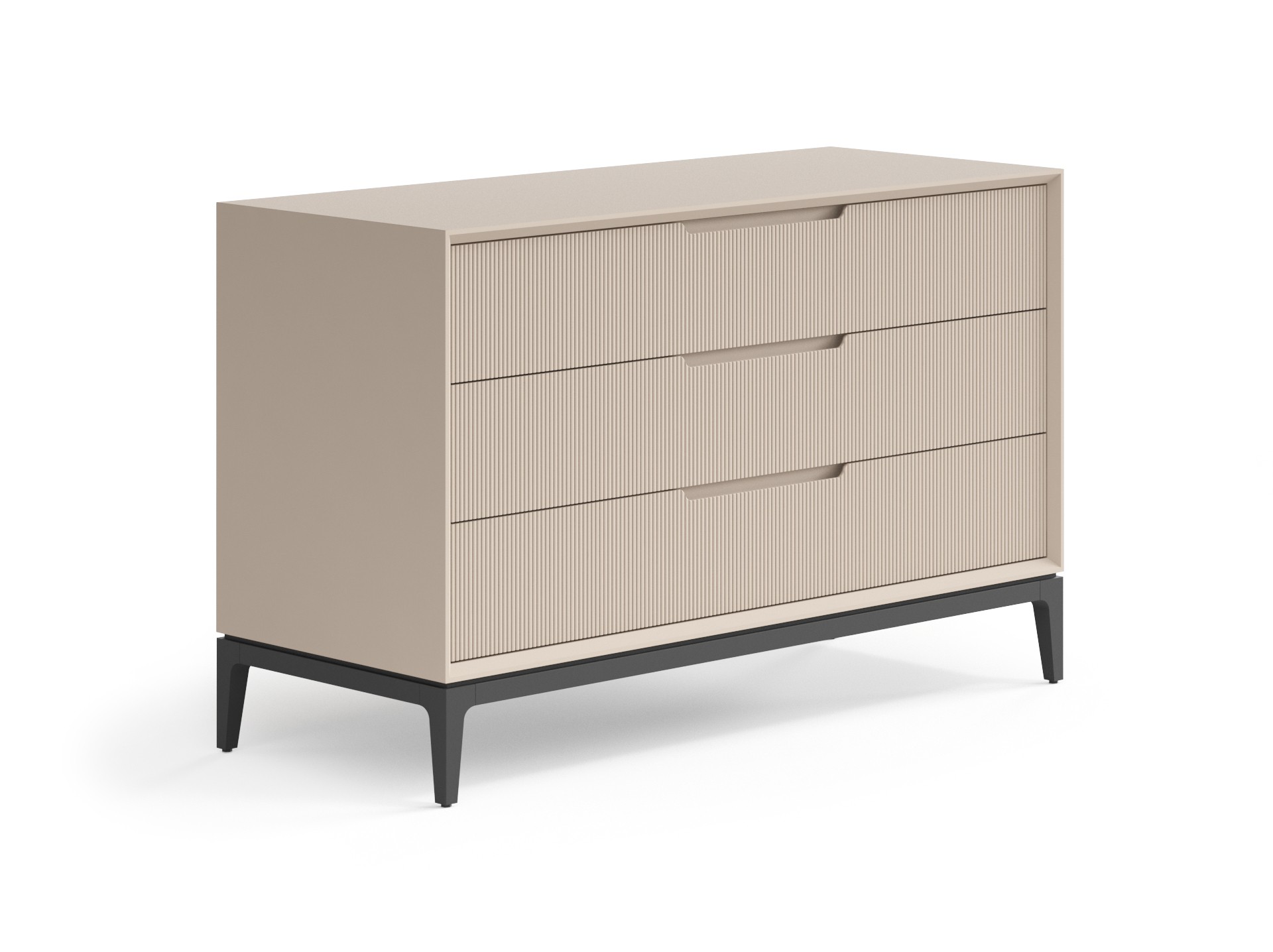 Рельеф на фасадах — приём, который делает интерьер объемным, тактильным, вносит интересную текстуру и создает современный образ. Каждое изделие коллекции Velvet вдохновлено красотой природы и дизайнерскими трендами. Фрезерованные ручки идеально интегрированы в дизайн мебели. Лаконичные и крепкие опоры из массива могут быть как древесными в цвет корпуса, так и в чёрной матовой эмали.