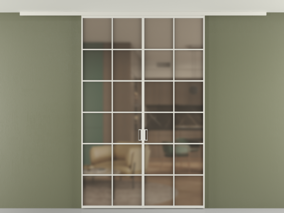 Во всех алюминиевых перегородках, независимо от типа установки, используется компланарный раздвижной механизм, благодаря которому декоративная крышка и полотно находятся в одной плоскости.