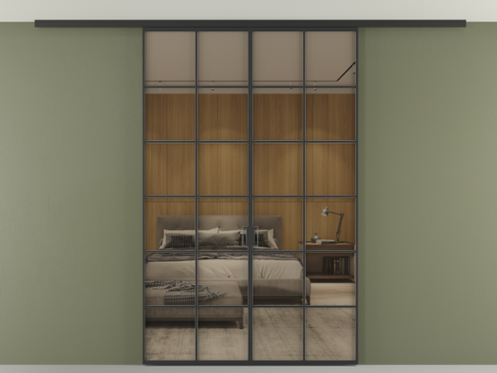 Во всех алюминиевых перегородках, независимо от типа установки, используется компланарный раздвижной механизм, благодаря которому декоративная крышка и полотно находятся в одной плоскости.