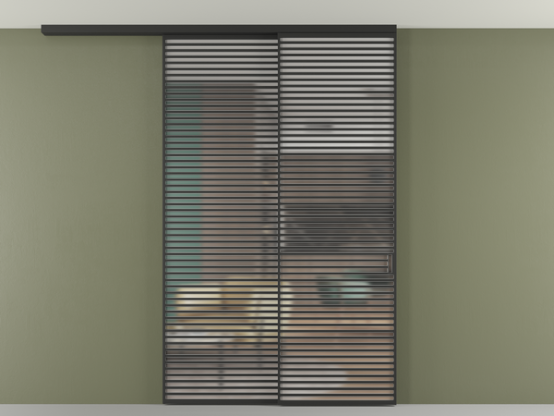 Во всех алюминиевых перегородках, независимо от типа установки, используется компланарный раздвижной механизм, благодаря которому декоративная крышка и полотно находятся в одной плоскости.