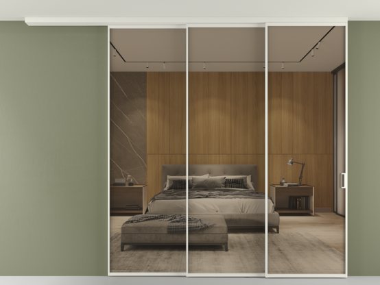 Во всех алюминиевых перегородках, независимо от типа установки, используется компланарный раздвижной механизм, благодаря которому декоративная крышка и полотно находятся в одной плоскости.