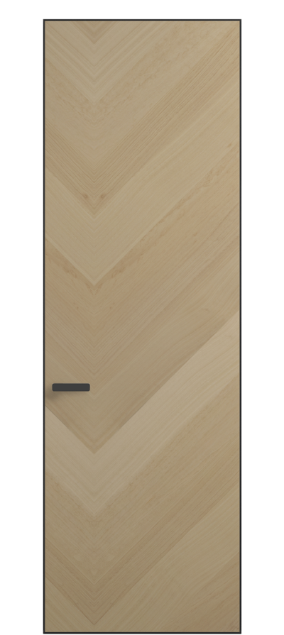 Полотно Rift в скрытом алюминиевом коробе становится полноценным элементом декора. В коллекции представлено 9 моделей дверей в высоте до 3 метров. Рисунок раскладки шпона варьируется от простого до сложного. «Рубашка» для каждого полотна подбирается вручную по цвету, текстуре и фактуре.