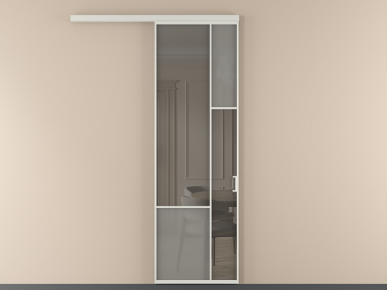 Во всех алюминиевых перегородках, независимо от типа установки, используется компланарный раздвижной механизм, благодаря которому декоративная крышка и полотно находятся в одной плоскости.