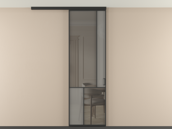 Во всех алюминиевых перегородках, независимо от типа установки, используется компланарный раздвижной механизм, благодаря которому декоративная крышка и полотно находятся в одной плоскости.