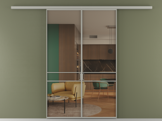 Алюминиевые перегородки имеют единый профиль с алюминиевыми дверьми и легко сочетаются в одном пространстве, не перегружая его. Также их можно комбинировать в интерьере с полотнами из нашего стандартного ассортимента. Помимо этого, система алюминиевых перегородок и дверей координируется со стеновыми панелями Волховец.