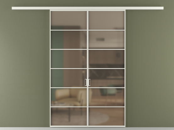 Во всех алюминиевых перегородках, независимо от типа установки, используется компланарный раздвижной механизм, благодаря которому декоративная крышка и полотно находятся в одной плоскости.