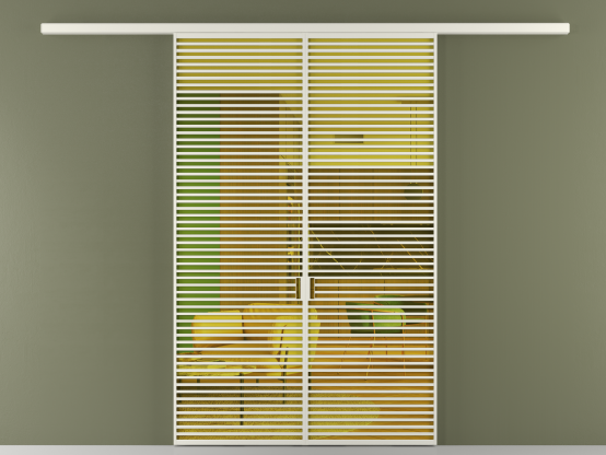 Дополнительно на раздвижную двустворчатую перегородку вдоль стены и четырёхстворчатую перегородку внутри проёма с двумя неподвижным полотнами можно установить механизм синхронного открывания — при открывании одной створки, вторая открывается автоматически.