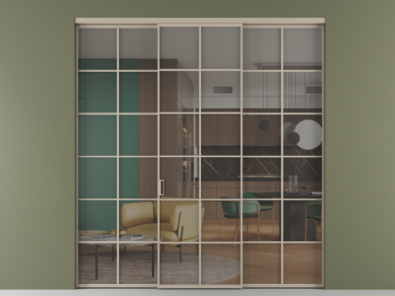 Алюминиевые перегородки имеют единый профиль с алюминиевыми дверьми и легко сочетаются в одном пространстве, не перегружая его. Также их можно комбинировать в интерьере с полотнами из нашего стандартного ассортимента. Помимо этого, система алюминиевых перегородок и дверей координируется со стеновыми панелями Волховец.