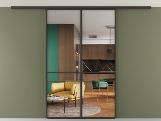 Алюминиевые перегородки имеют единый профиль с алюминиевыми дверьми и легко сочетаются в одном пространстве, не перегружая его. Также их можно комбинировать в интерьере с полотнами из нашего стандартного ассортимента. Помимо этого, система алюминиевых перегородок и дверей координируется со стеновыми панелями Волховец.
