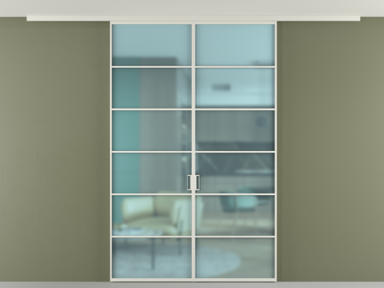 Во всех алюминиевых перегородках, независимо от типа установки, используется компланарный раздвижной механизм, благодаря которому декоративная крышка и полотно находятся в одной плоскости.