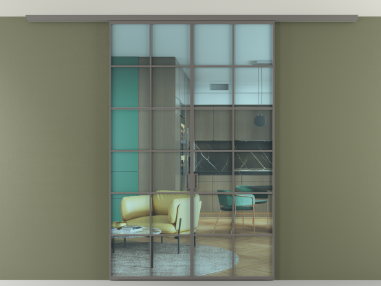 Во всех алюминиевых перегородках, независимо от типа установки, используется компланарный раздвижной механизм, благодаря которому декоративная крышка и полотно находятся в одной плоскости.