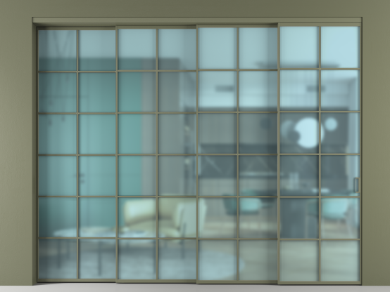 Перегородка Formato внутри проёма 4 створки с синхронным механизмом
