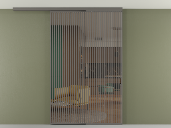 Дополнительно на раздвижную двустворчатую перегородку вдоль стены и четырёхстворчатую перегородку внутри проёма с двумя неподвижным полотнами можно установить механизм синхронного открывания — при открывании одной створки, вторая открывается автоматически.