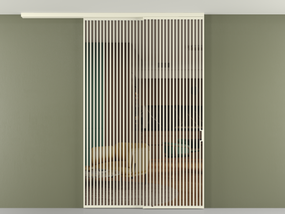 Дополнительно на раздвижную двустворчатую перегородку вдоль стены и четырёхстворчатую перегородку внутри проёма с двумя неподвижным полотнами можно установить механизм синхронного открывания — при открывании одной створки, вторая открывается автоматически.