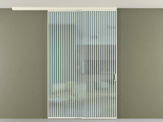 Дополнительно на раздвижную двустворчатую перегородку вдоль стены и четырёхстворчатую перегородку внутри проёма с двумя неподвижным полотнами можно установить механизм синхронного открывания — при открывании одной створки, вторая открывается автоматически.