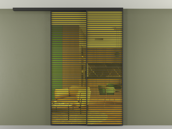 Дополнительно на раздвижную двустворчатую перегородку вдоль стены и четырёхстворчатую перегородку внутри проёма с двумя неподвижным полотнами можно установить механизм синхронного открывания — при открывании одной створки, вторая открывается автоматически.