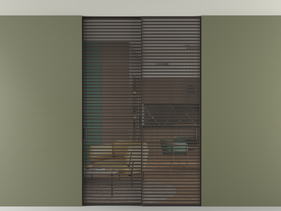 Во всех алюминиевых перегородках, независимо от типа установки, используется компланарный раздвижной механизм, благодаря которому декоративная крышка и полотно находятся в одной плоскости.