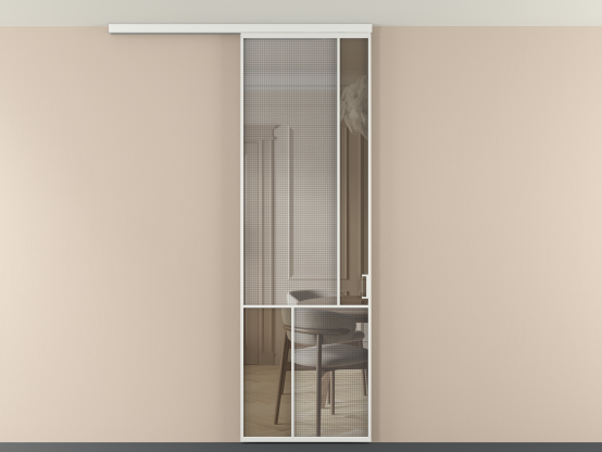 Во всех алюминиевых перегородках, независимо от типа установки, используется компланарный раздвижной механизм, благодаря которому декоративная крышка и полотно находятся в одной плоскости.