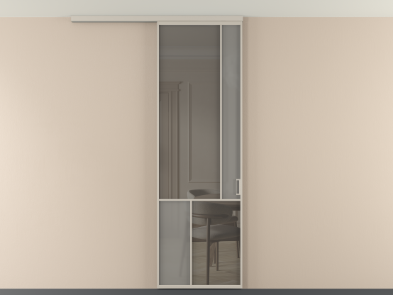 Во всех алюминиевых перегородках, независимо от типа установки, используется компланарный раздвижной механизм, благодаря которому декоративная крышка и полотно находятся в одной плоскости.