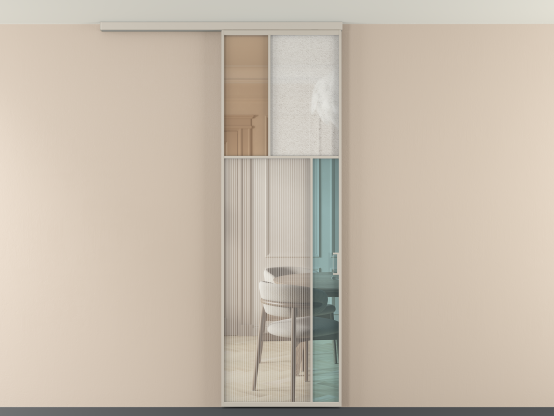 Во всех алюминиевых перегородках, независимо от типа установки, используется компланарный раздвижной механизм, благодаря которому декоративная крышка и полотно находятся в одной плоскости.