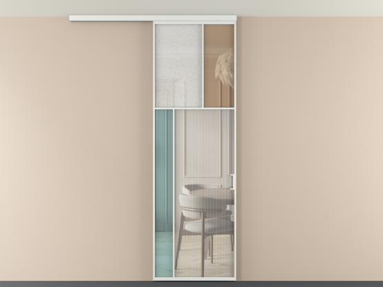 Во всех алюминиевых перегородках, независимо от типа установки, используется компланарный раздвижной механизм, благодаря которому декоративная крышка и полотно находятся в одной плоскости.