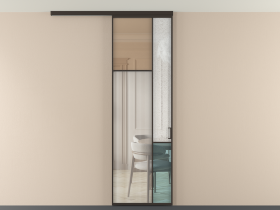 Во всех алюминиевых перегородках, независимо от типа установки, используется компланарный раздвижной механизм, благодаря которому декоративная крышка и полотно находятся в одной плоскости.