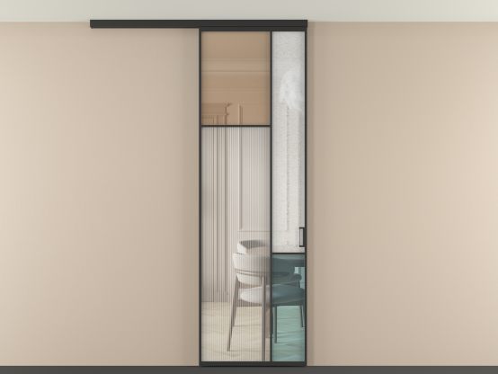 Во всех алюминиевых перегородках, независимо от типа установки, используется компланарный раздвижной механизм, благодаря которому декоративная крышка и полотно находятся в одной плоскости.