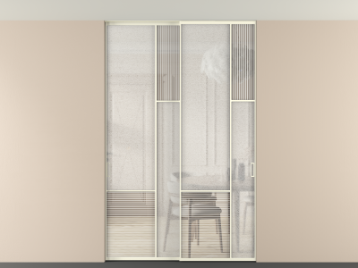 Во всех алюминиевых перегородках, независимо от типа установки, используется компланарный раздвижной механизм, благодаря которому декоративная крышка и полотно находятся в одной плоскости.