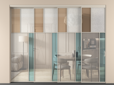 Перегородка Мозаик внутри проёма 4 створки с синхронным механизмом