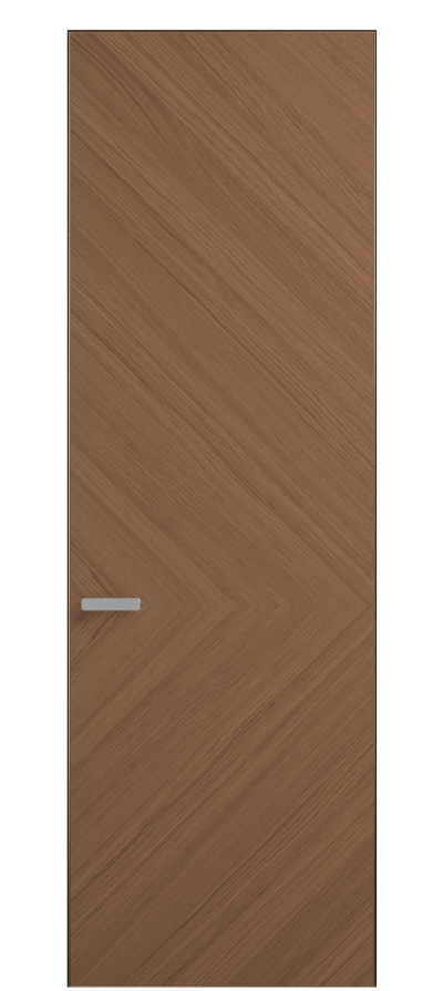 Полотно Rift в скрытом алюминиевом коробе становится полноценным элементом декора. В коллекции представлено 9 моделей дверей в высоте до 3 метров. Рисунок раскладки шпона варьируется от простого до сложного. «Рубашка» для каждого полотна подбирается вручную по цвету, текстуре и фактуре.