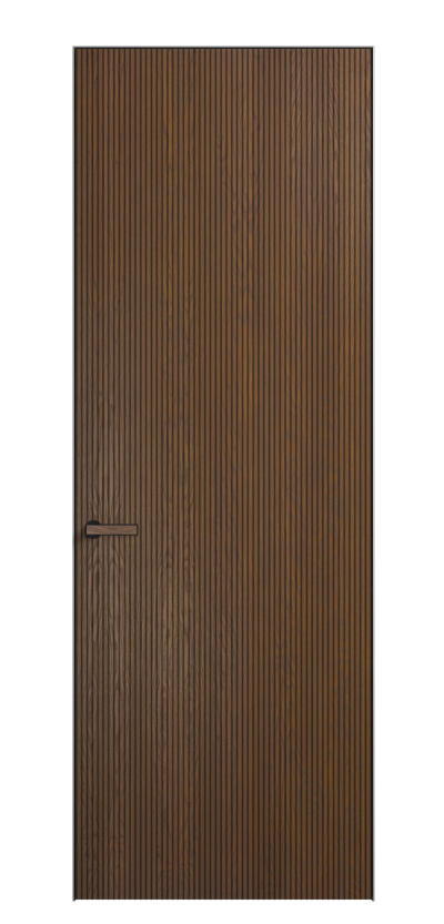 Это полотна с рельефной фрезеровкой. Этот прием делает интерьер объемным, тактильным, вносит интересную текстуру и создает современный образ. Волнистый рельеф может быть выполнен по ламелям из массива дуба в древесных матовых отделках, либо исполнен по натуральному и экологически безопасному материалу — ХДФ, покрытому гладкой эмалью актуальных оттенков.