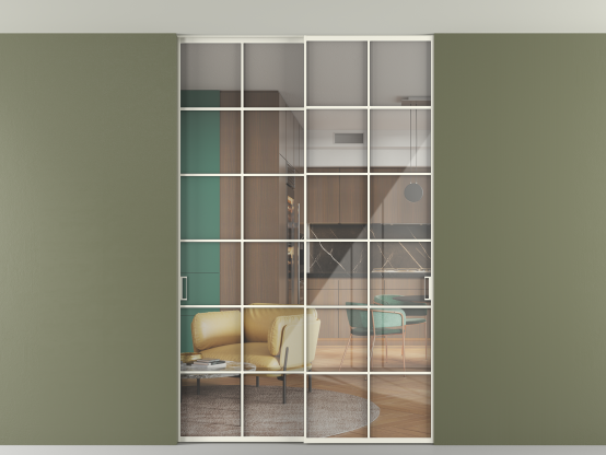 Алюминиевые перегородки имеют единый профиль с алюминиевыми дверьми и легко сочетаются в одном пространстве, не перегружая его. Также их можно комбинировать в интерьере с полотнами из нашего стандартного ассортимента. Помимо этого, система алюминиевых перегородок и дверей координируется со стеновыми панелями Волховец.