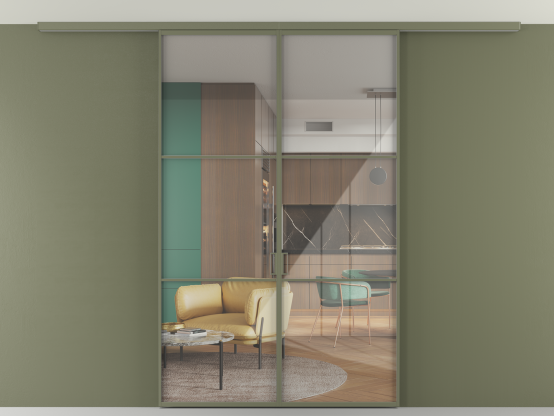 Алюминиевые перегородки имеют единый профиль с алюминиевыми дверьми и легко сочетаются в одном пространстве, не перегружая его. Также их можно комбинировать в интерьере с полотнами из нашего стандартного ассортимента. Помимо этого, система алюминиевых перегородок и дверей координируется со стеновыми панелями Волховец.