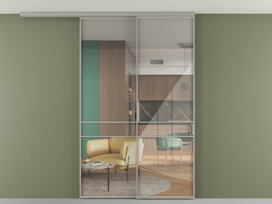 Во всех алюминиевых перегородках, независимо от типа установки, используется компланарный раздвижной механизм, благодаря которому декоративная крышка и полотно находятся в одной плоскости.