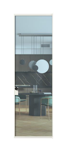 Минималистичный профиль повторяет форму профиля алюминиевых раздвижных перегородок Формато, что позволяет легко сочетать оба решения в одном пространстве.