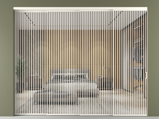 Дополнительно на раздвижную двустворчатую перегородку вдоль стены и четырёхстворчатую перегородку внутри проёма с двумя неподвижным полотнами можно установить механизм синхронного открывания — при открывании одной створки, вторая открывается автоматически.