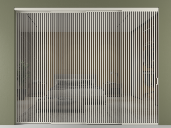 Дополнительно на раздвижную двустворчатую перегородку вдоль стены и четырёхстворчатую перегородку внутри проёма с двумя неподвижным полотнами можно установить механизм синхронного открывания — при открывании одной створки, вторая открывается автоматически.