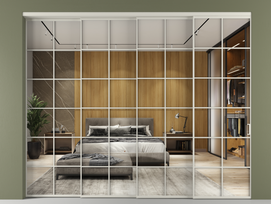 Перегородка Формато внутри проёма 4 створки с синхронным механизмом