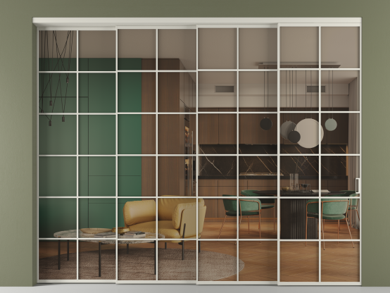 Перегородка Формато внутри проёма 4 створки с синхронным механизмом