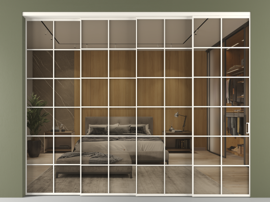 Перегородка Формато внутри проёма 4 створки с синхронным механизмом