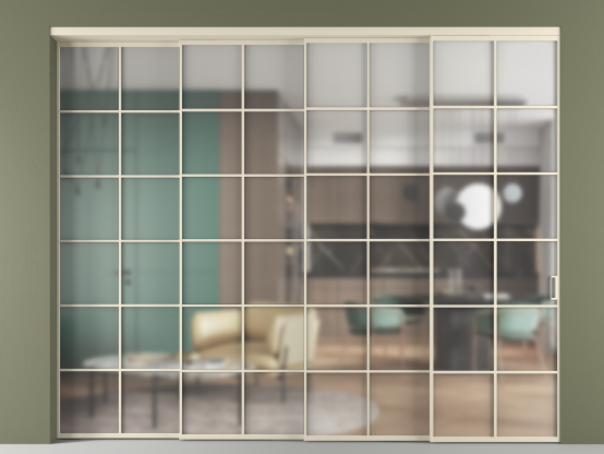 Перегородка Формато внутри проёма 4 створки с синхронным механизмом