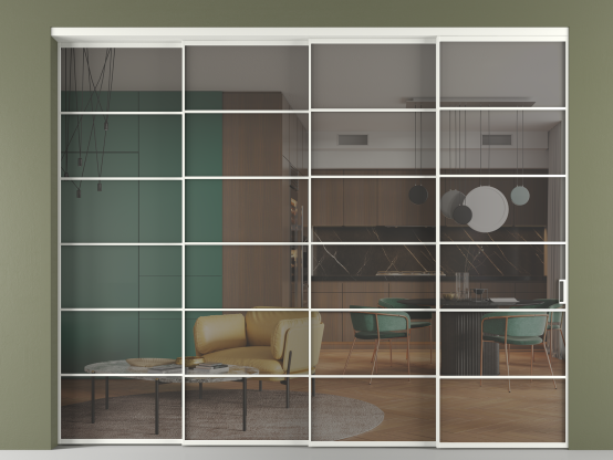 Перегородка Формато внутри проёма 4 створки с синхронным механизмом
