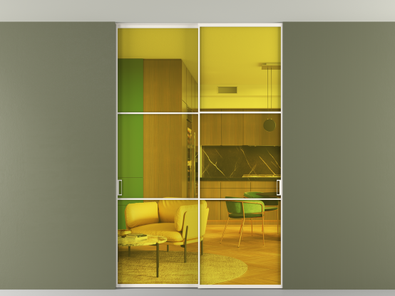 АЛПР 040.03. Алюминий пудровый белый Прозрачное жёлтое стекло, триплекс, 6мм