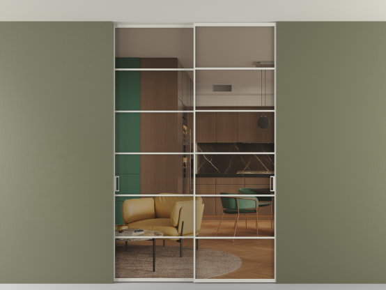 Алюминиевые перегородки имеют единый профиль с алюминиевыми дверьми и легко сочетаются в одном пространстве, не перегружая его. Также их можно комбинировать в интерьере с полотнами из нашего стандартного ассортимента. Помимо этого, система алюминиевых перегородок и дверей координируется со стеновыми панелями Волховец.