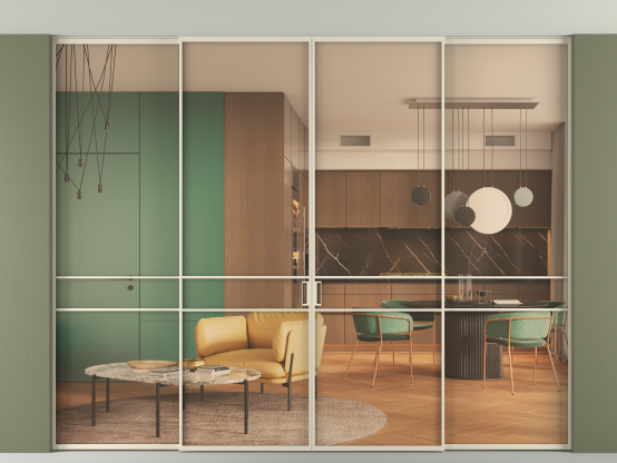 Алюминиевые перегородки Formato — это стильное и функциональное решение для современных интерьеров, предназначенное для разделения и зонирования пространства внутри одного помещения. Перегородки изготавливаются под индивидуальные размеры с шагом в 1 мм, что даёт возможность подобрать оптимальное соотношение размеров и количества створок, в том числе и для нестандартных проёмов.