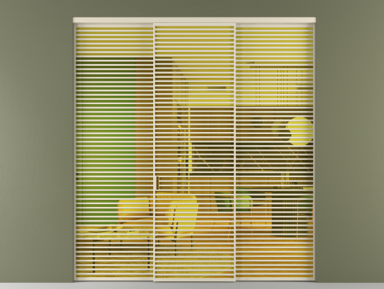 Дополнительно на раздвижную двустворчатую перегородку вдоль стены и четырёхстворчатую перегородку внутри проёма с двумя неподвижным полотнами можно установить механизм синхронного открывания — при открывании одной створки, вторая открывается автоматически.