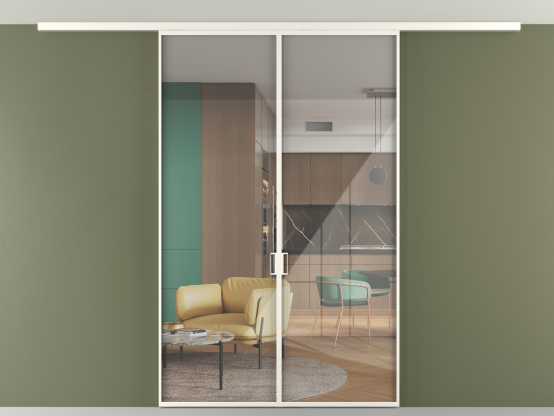 Во всех алюминиевых перегородках, независимо от типа установки, используется компланарный раздвижной механизм, благодаря которому декоративная крышка и полотно находятся в одной плоскости.