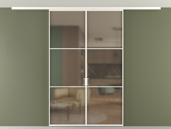 Дополнительно на раздвижную двустворчатую перегородку вдоль стены и четырёхстворчатую перегородку внутри проёма с двумя неподвижным полотнами можно установить механизм синхронного открывания — при открывании одной створки, вторая открывается автоматически.