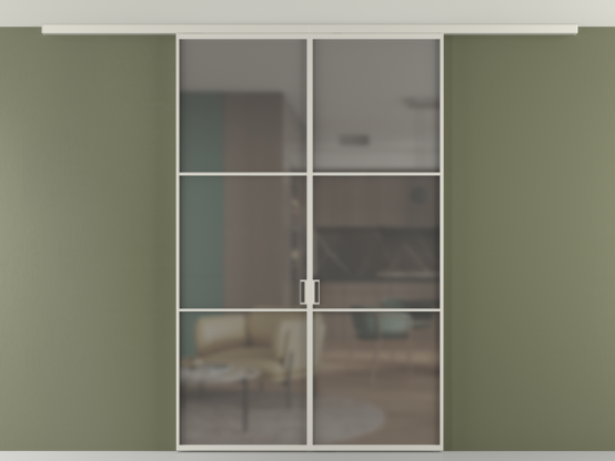 Во всех алюминиевых перегородках, независимо от типа установки, используется компланарный раздвижной механизм, благодаря которому декоративная крышка и полотно находятся в одной плоскости.