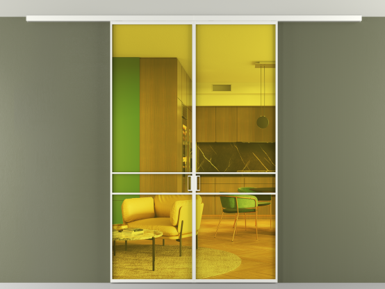 Во всех алюминиевых перегородках, независимо от типа установки, используется компланарный раздвижной механизм, благодаря которому декоративная крышка и полотно находятся в одной плоскости.